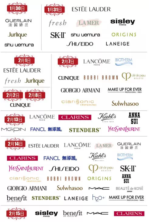 礼金券使用时间:1月29日-2月19日